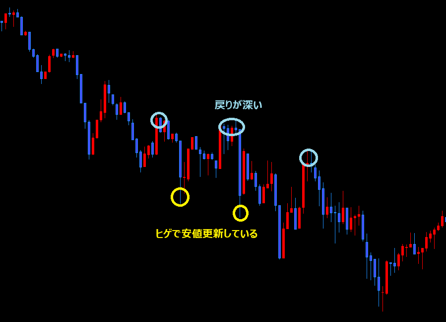 ヒゲで安値を更新したり、