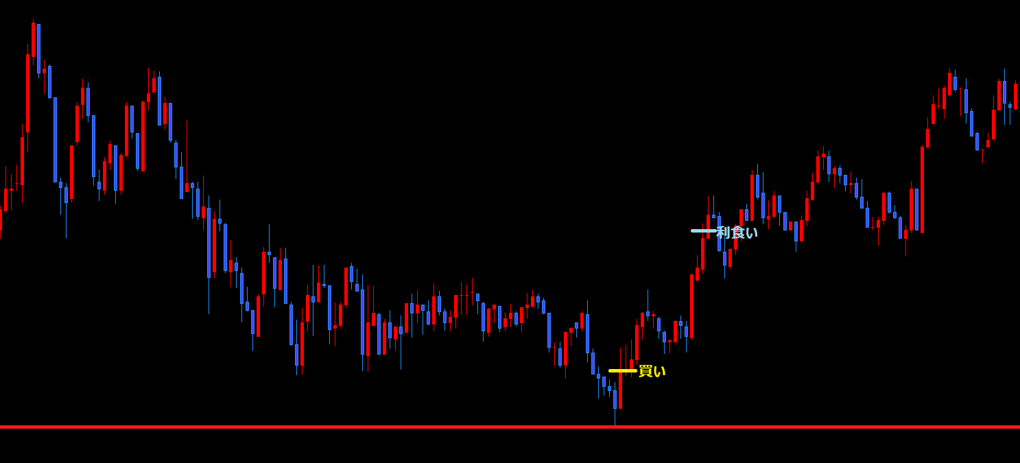 利食いは反転しそうな場所の