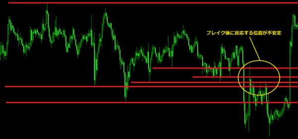 何回か反応があるレンジのチャートです。